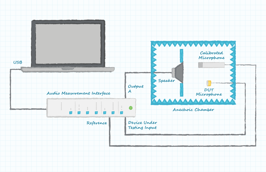 首先,我们需要一个标准的麦克风,这个麦克风可以读取输入声音的声压大小。我们还需要一个高保真音箱,我们需要保证输出的音频尽可能不失真,而且频宽比较大。我们把标准麦克风和高保真音箱放着一个水平线上,然后高保真音箱播放1k信号,标准麦克风可以检测到高保真音箱输出的声音大小,调整高保真音箱的输出,保证标准麦克风收到的声压级在94db SPL。