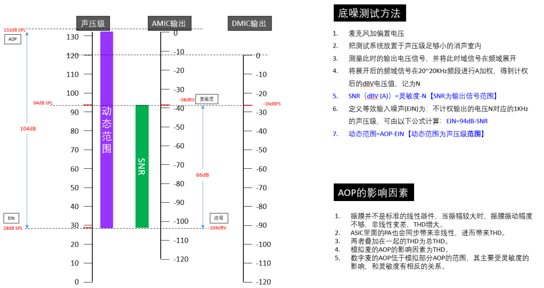 THD失真达到10%时候的声压级定义为器件的AOP,也就是麦克风可以承受的最大的声压级,如果超过这个声压级,麦克风将严重失真。