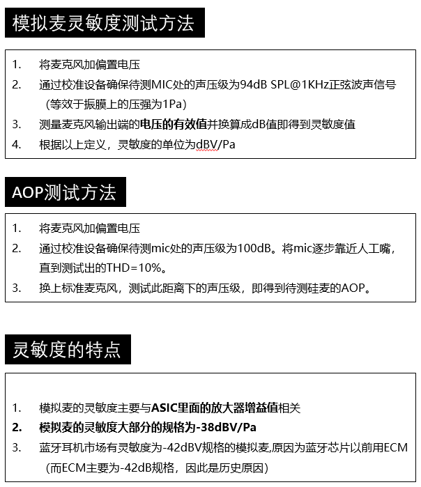 如果我们手里有一个MIC风,它的灵敏度是一定的,我们输入慢慢变大的声压级,在声压级慢慢变大的时候,肯定会遇到MIC风可以承受声压级的上限,这个上限就是我们要讨论的AOP,如果声压级超过AOP,那么MIC就会失真。