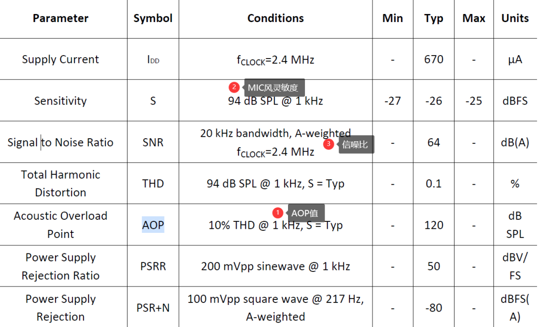 我们看看目前市场上最好的MIC风,楼氏硅麦的参数