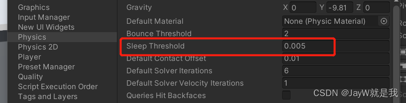 当刚体的移动速度低于休眠阈值(在project setting里),