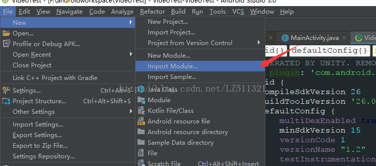 (一)首先,创建一个Android工程,并且将刚刚Unity打包的工程作为model导入Android工程中去