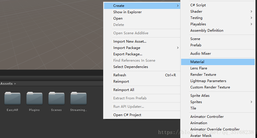 2、新建一个Unity3D的项目,然后双击下载好的EasyAR,将其导入到项目中;