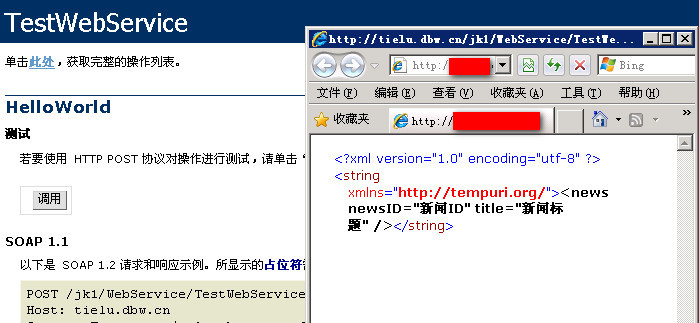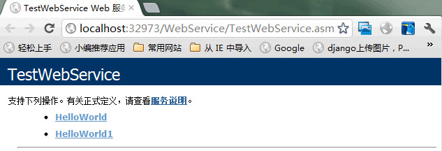 3.编写好方法后,这个时候可以把这个小程序发布到网站上,此处不介绍如何发布网站。我这里是在II6上发布的。在浏览器中打开的时候就可以看见相应的方法以及数据。