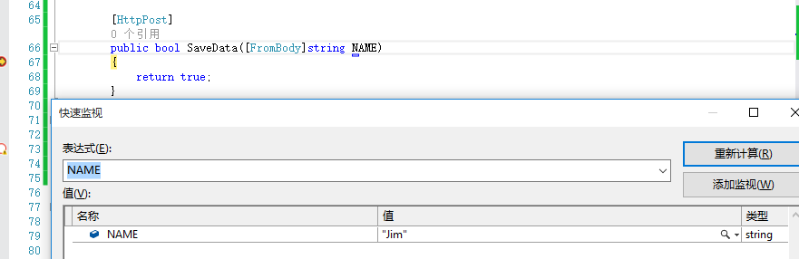- public bool SaveData([FromBody]string NAME)