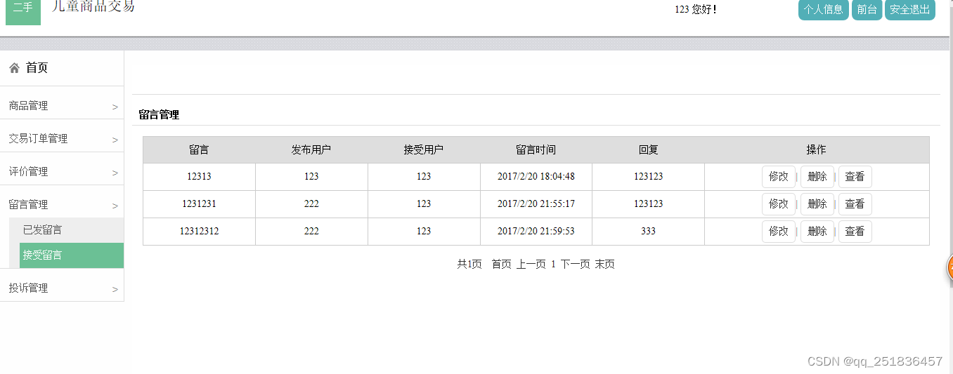 (7)留言管理:对留言信息进行添加、删除、修改和查看