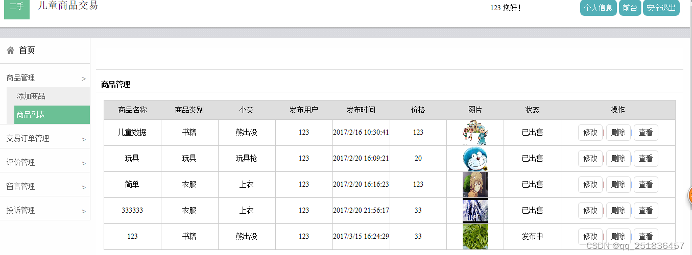 (4)商品管理:对商品信息进行添加、删除、修改和查看