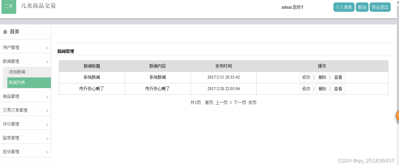 (2)新闻管理:对新闻信息进行添加、删除、修改和查看