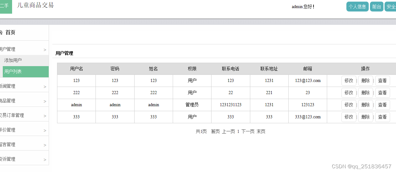 (1)用户管理:对用户信息进行添加、删除、修改和查看