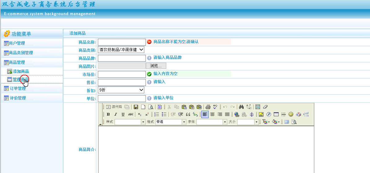 商品类别管理:对商品的类别进行增加、删除、修改和查看。商品管理:对商品的信息进行添加、删除、修改和查看。