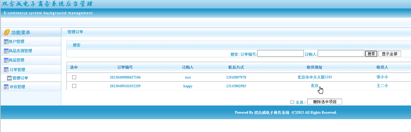 订单管理:对用户购买的订单进行查看、处理状态等管理。