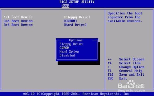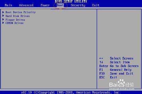 3、找到Boot选项卡(用键盘上的左右键移动选择,Enter键确认),在这里我们可以对我们的启动项进行选择,它有第一启动项,第二启动项....供我们选择。