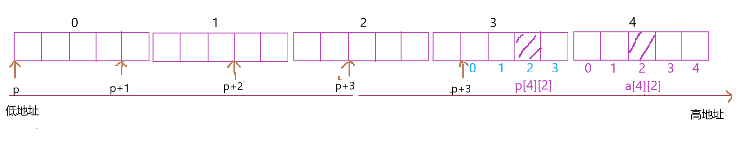 7.&p[0]+1代表第二个元素的地址,与2.同理