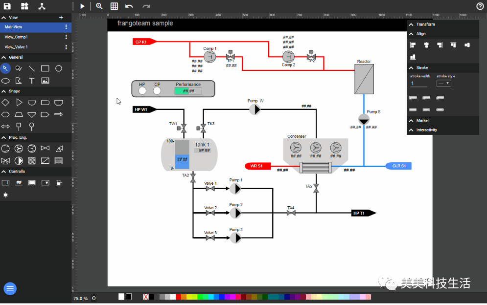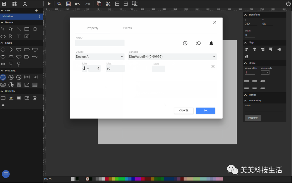 支持各种组件(矩形、圆形、线条、菱形、三角形、图片、文字、开关等各种形状,各种自定义图形)