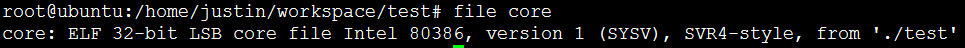 当前目录下产生了core文件,使用file命令查看core文件类型