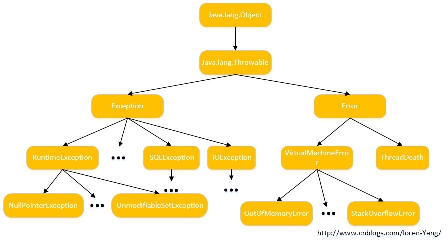 Exception家族我们恐怕见的不少,但是error家族我们可能就没什么印象了,下面我来说说这两个类的区别: