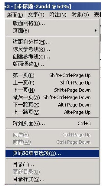 ⑥要改变页码的样式,在没有选择页面或者选择开始页时,单击菜单“版面”>“页码和章节选项”,打开新建章节面板,选择一个页码样式。