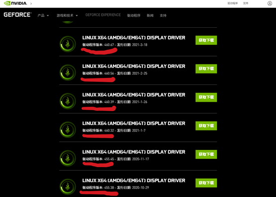 上述红线画住的全是版本号,下载任意一个都可以安装在当前操作系统中。不过,我们这里尚不能随意选择,因为还有tensorflow版本的制约,应该先停下,去查询tensorflow的版本,再回来下载正确的驱动程序版本。