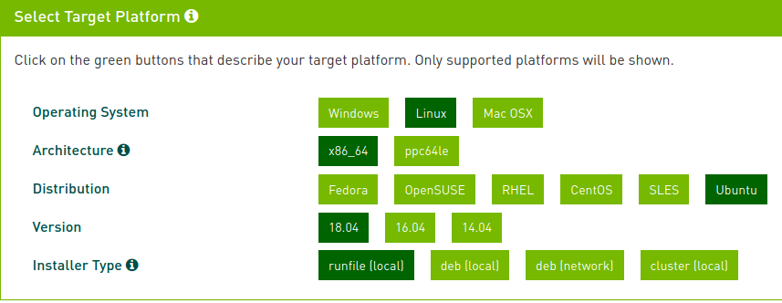 cuda的版本,受限于tensorflow,见第二章。因此这里选择的cuda是10.0版本,对应的cuDNN是7.4.