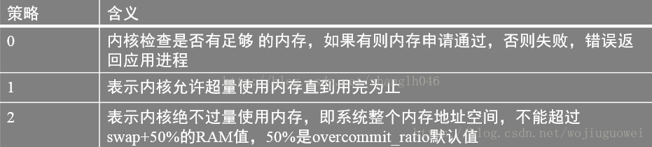vm.overcommit_memory用来设置内存分配策略,有三个可选值: