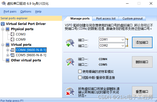 设置为COM4和COM5端口,然后打开软件和串口调试助手
