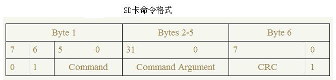 SD卡的命令格式如下,6字节共48位,传输时最高位(MSB)先传输: