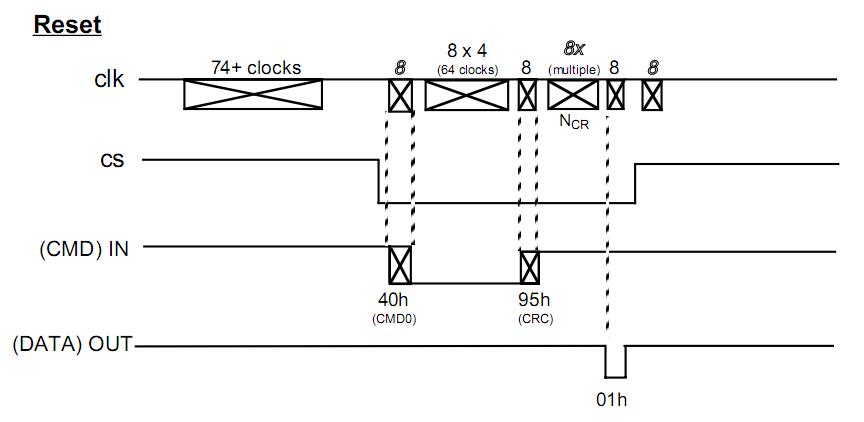 2.选低CS,发送CMD0,需要收到回应0x01表示成功进入idle状态
