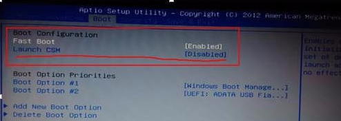 这里我们将其改成disabled就可以了,然后设置csm开启,然后我们在BOOT 菜单下的Launch CSM 便显示可设置状态。