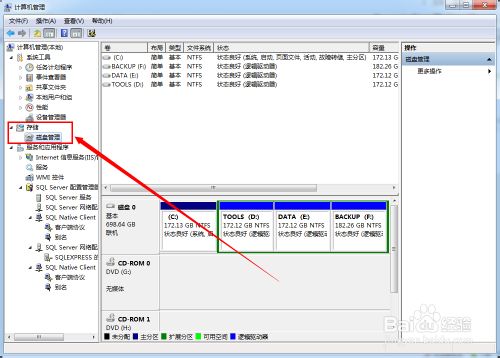 在“计算机管理”界面,选择“存储”,然后点击“磁盘管理”。