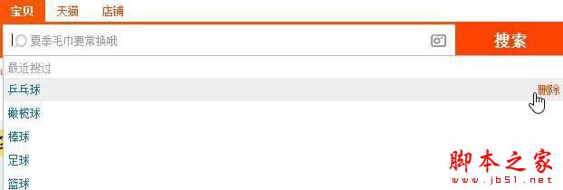 2、鼠标移动到需要删除的关键词上,后面就会出现【删除】按钮,点击删除即可清除搜索记录。