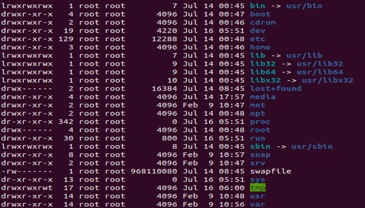 在 Linux 中我们可以使用 ll 或者 ls –l 命令来显示一个文件的属性以及文件所属的用户和组,如: