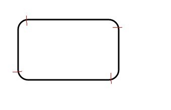 一个正常的圆角矩形,我们先假设他四个角的圆角弧度一致——因为这样比较好画。我们动用把面拆成线条的能力,很容易就能发现圆角矩形其实是由4条钩子般的曲线组成。
