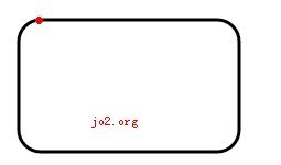此方法用了4次arcTo画出了一个圆角矩形,他的每个角的弧度都是一样的。此圆角矩形的坐标点也是和矩形一样的左上角,但他的起笔点可不是这里,而是: