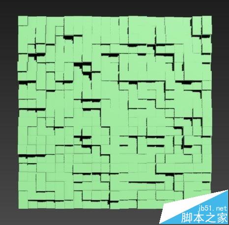 注意事项:“分布对象参数”里如果“垂直”的勾选没有去掉,分布的各长方体就不会指向同一方向,而是垂直于平面噪波生成的凹凸面。