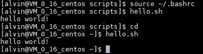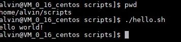 假设,我现在脚本放在 /home/alvin/scripts 目录下,脚本名称是 hello.sh ,运行的结果就是打印一句 hello world 。