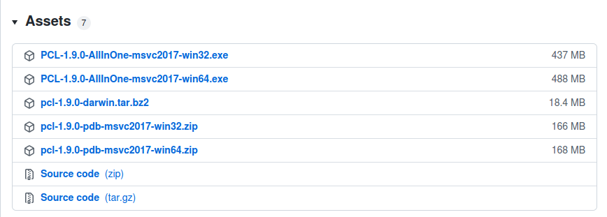 二、PCL1.9.0版本下载