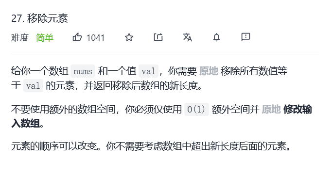 - 如果快指针指向的元素不等于 val,它一定是输出数组的一个元素,我们就将快指针指向的元素复制到慢指针位置,然后将快慢指针同时右移;