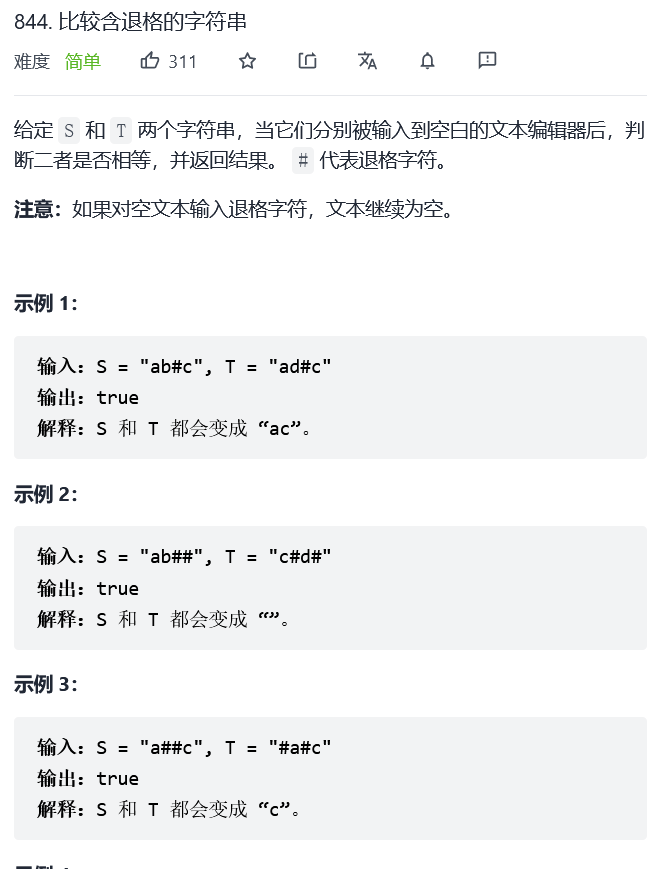844. 比较含退格的字符串