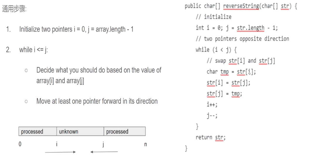 - while(i<=j)的条件下,根据题目要求移动指针。