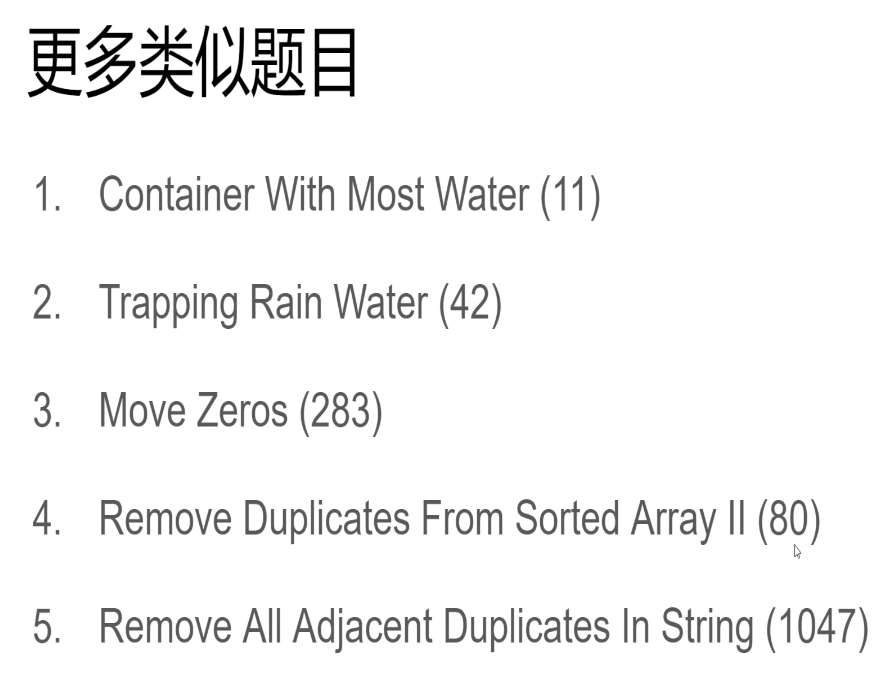 以上就是友好日记本最近收集整理的关于双指针方法解题总体思路:B站视频地址 同向时反向时例题实战更多例题留作以后练习用。的全部内容,更多相关双指针方法解题总体思路:B站视频地址 同向时反向时例题实战更多例题留作以后练习用内容请搜索靠谱客的其他文章。