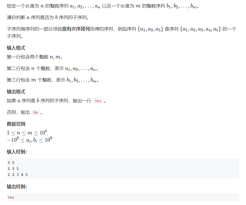 Acwing2816判断子序列-----双指针
