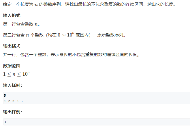 Acwing799----最长连续不重复子序列