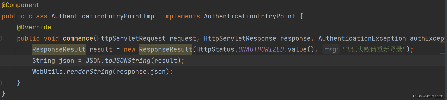 所以如果我们需要自定义异常处理,我们只需要自定义AuthenticationEntryPoint和AccessDeniedHandler然后配置给SpringSecurity即可。