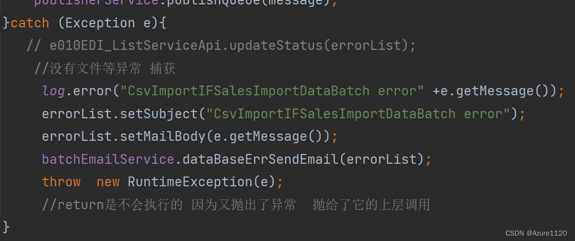 一点点总结: fortune 没有用全局处理 而是对于运行时异常采取了try-catch 发生异常被捕捉后 “5.如果发生异常,回滚数据,终止处理,发送邮件通知,更新EDI配置信息表,EDI履历主表,EDI履历明细表”