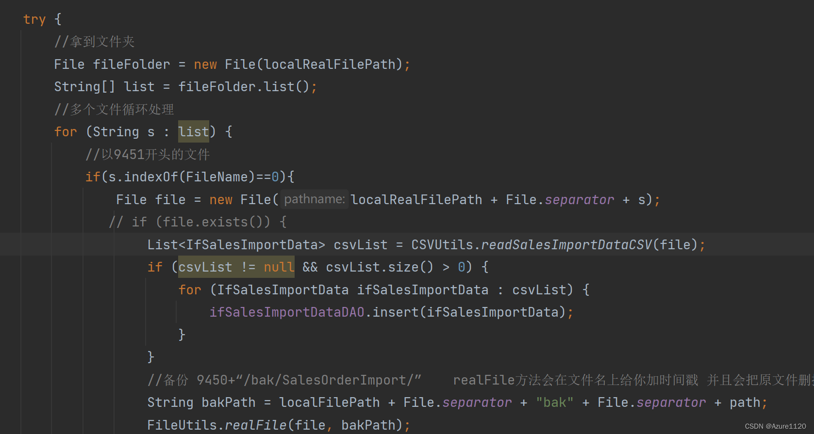 try里面的CSVUtils.readSalesImportDataCSV(file) 报了异常 但是程序没有停 还是插入了
