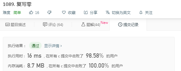 以上就是留胡子香烟最近收集整理的关于LeetCode(1089)复写零的全部内容,更多相关LeetCode(1089)复写零内容请搜索靠谱客的其他文章。