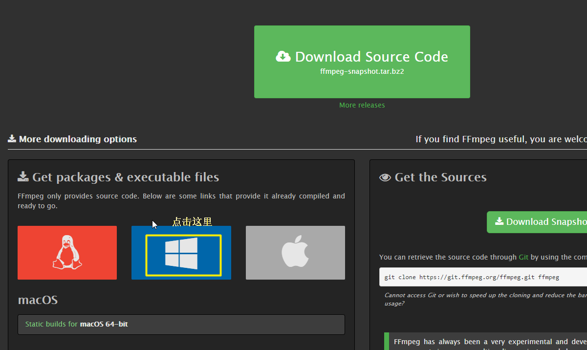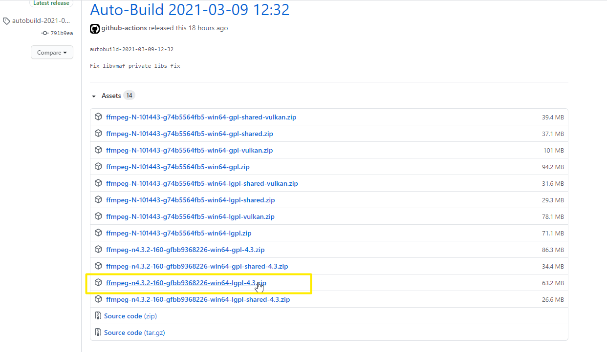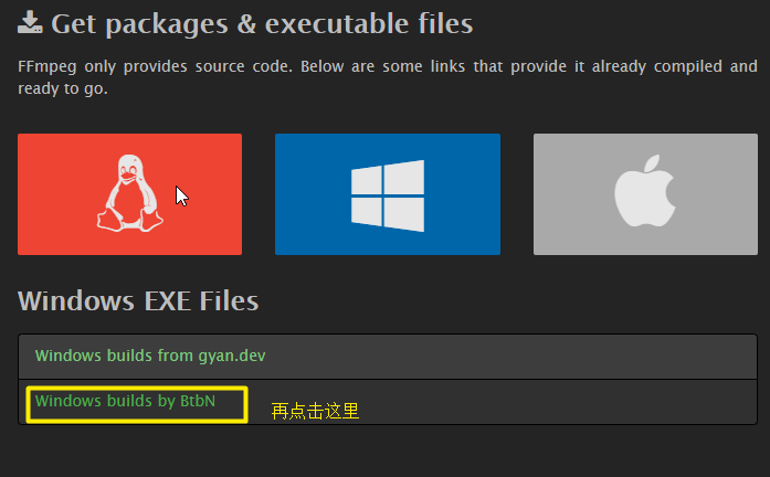 选择下图所示的选项,不要选“Windows builds from gyan.dev”,因为下载速度贼慢。