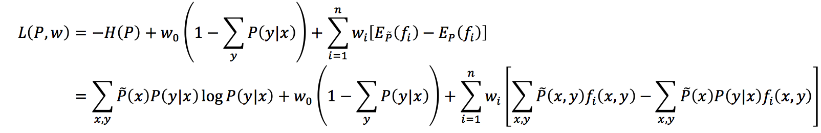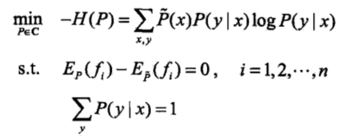 在上一篇文章【1】中,我们已经得到了与最大熵模型之学习等价的带约束的最优化问题: