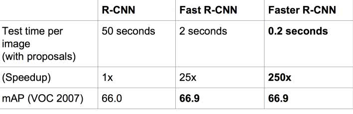 总的来说,从R-CNN, SPP-NET, Fast R-CNN, Faster R-CNN一路走来,基于深度学习目标检测的流程变得越来越精简,精度越来越高,速度也越来越快。可以说基于region proposal的R-CNN系列目标检测方法是当前目标检测技术领域最主要的一个分支。