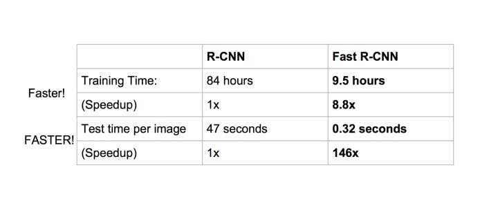 (2) R-CNN训练过程分为了三个阶段,而Fast R-CNN直接使用softmax替代SVM分类,同时利用多任务损失函数边框回归也加入到了网络中,这样整个的训练过程是端到端的(除去region proposal提取阶段)。